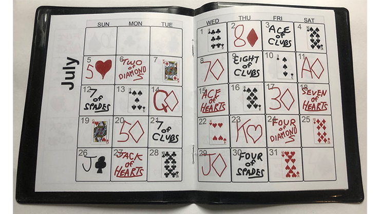 Performance: Der Zuschauer nennt ein beliebiges Datum im Jahr. Anhand der Grafiken im PreDate-Kalender zeigt der Darsteller, wie ein Kartenspiel einem Kalender ähnelt, und fordert den Zuschauer auf, eine Karte auszuwählen. Der Darsteller zeigt, dass an jedem Tag des Jahres eine andere Karte gedruckt wurde UND die ausgewählte Karte am angegebenen Datum des Zuschauers gedruckt ist.