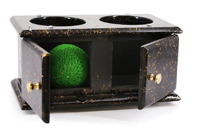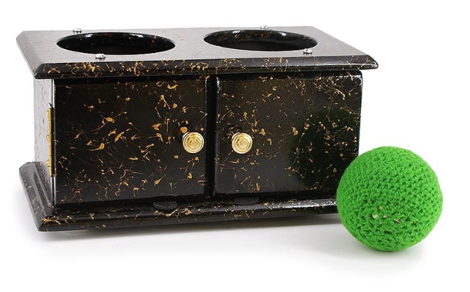 Der Zauberer zeigt eine Schachtel mit zwei Türen, die er öffnet und die innen leer ist. Auf der einen Seite legt er eine Kugel hinein und schließt die Türen. Er kippt die Schachtel nach links und sagt, dass die Kugel verschwunden ist und öffnet die rechte Tür, um dies zu bestätigen. Dann kippt er die Schachtel nach rechts und öffnet die Tür des linken Fachs. Und so weiter, mehrere Male. Das Publikum brüllt und versteht, dass die Kugel jedes Mal einfach von einer Seite des Kastens auf die andere rollt. Dann öffnet der Zauberkünstler beide Türen und zeigt, dass die Kugel nicht von einer Seite zur anderen rollen kann, da sie durch eine massive Trennwand in der Mitte behindert wird! Dann schließt er die Türen und wiederholt den Effekt noch einmal: Die Kugel bewegt sich auf magische Weise ungestört in der Kiste weiter, bis der Zauberer die Türen wieder öffnet, um zu zeigen, dass sie vollständig verschwunden ist!