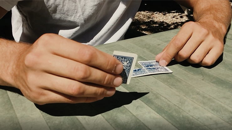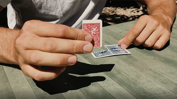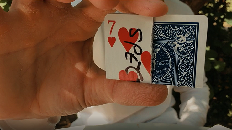 Ihr Zuschauer sucht eine Karte aus, die Sie dann ein Mal längs und einmal quer falten, so dass die Karte vier Teile hat. Sie und Ihr Zuschauer unterschreiben die Karten außerdem. Anschließend zerreissen Sie die Karte, so dass schließlich ein Viertel fehlt. Während der gesamten Routine sind die Unterschriften auf der Karte zu sehen. Die Farbe des abgerissenen Kartenviertels verwandeln Sie nun blitzartig in Ihrer Hand - von Blau in Rot oder umgekehrt - und legen das Kartenstück dann wieder an die Karte an und stellen die Karte zu guter Letzt komplett wieder her. Allerdings mit einem andersfarbigen Kartenviertel! Schließlich überlassen Sie Ihrem Zuschauer die Karte als Andenken.