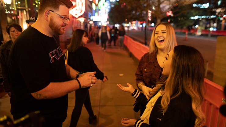 Der magische Moment findet ohne Abdeckung statt. Mit Revolve von Nicholas Lawrence geschieht der Zauber höchst visuell direkt vor den Augen der Zuschauer. Wenn Sie wollen, können Sie die Verwandlung einer Spielkarte auch direkt in der Hand eines Zuschauers geschehen lassen und die Karte anschließend als Souvenir verschenken.
