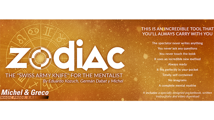 ZODIAC ist ein speziell gefertigtes Buch im Hosentaschenformat. Die damit möglichen Routinen können jederzeit und überall vorgeführt und sofort wiederholt werden, ohne dass Fragen gestellt oder Anagramme hinzugezogen werden. Profitieren Sie von einer brandneuen Methode, die als ein in sich geschlossenes System funktioniert!