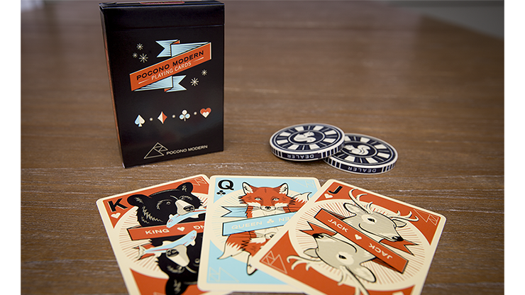 We love playing cards and designed these to be a truly unique deck that is as fun as it is functional. Each vibrant card is inspired by charming 1950's illustrations found on posters, children's books, and matchbook covers. The Court cards feature different animals found in the Northeastern USA: a bear King, a fox Queen, a deer Jack, and a raccoon Joker. No two cards are exactly the same.