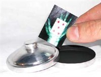 After selecting a card, the magician shows a little polished aluminum box and takes out a piece of white photographic paper from it. He explains that it is a heat-sensitive paper. The spectator puts the chosen card on his right palm, the box with the paper inside over it, he covers the box with the lid and puts his left hand on top of all. After a few seconds the spectator himself opens the box and he finds the paper printed with a color x-ray image of both his hand and the selected card.